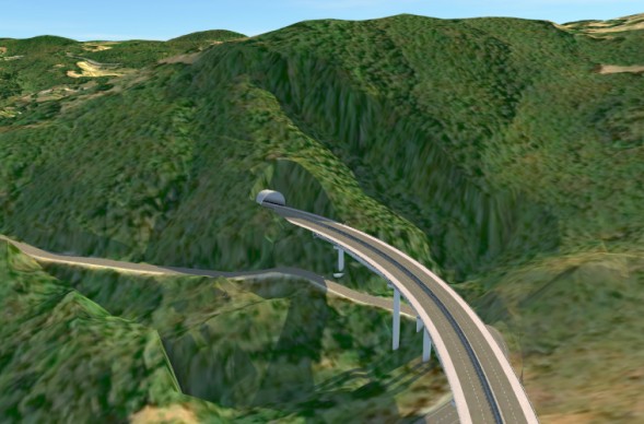 Imagen 7.- Modelado del túnel en Civil 3d. Una vez definido el proyecto geométrico se puede realizar una presentación preliminar del túnel ya sea en una maqueta virtual o en un video.