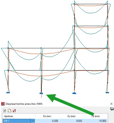 Pórtico con apoyos fijos y apoyos elásticos Es posible definir también desplazamientos prescritos en los apoyos.