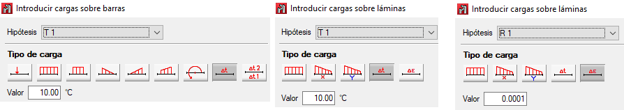 Cargas superficiales Finalmente, también es posible introducir cargas de temperatura en barras o cargas de temperatura y de retracción en láminas